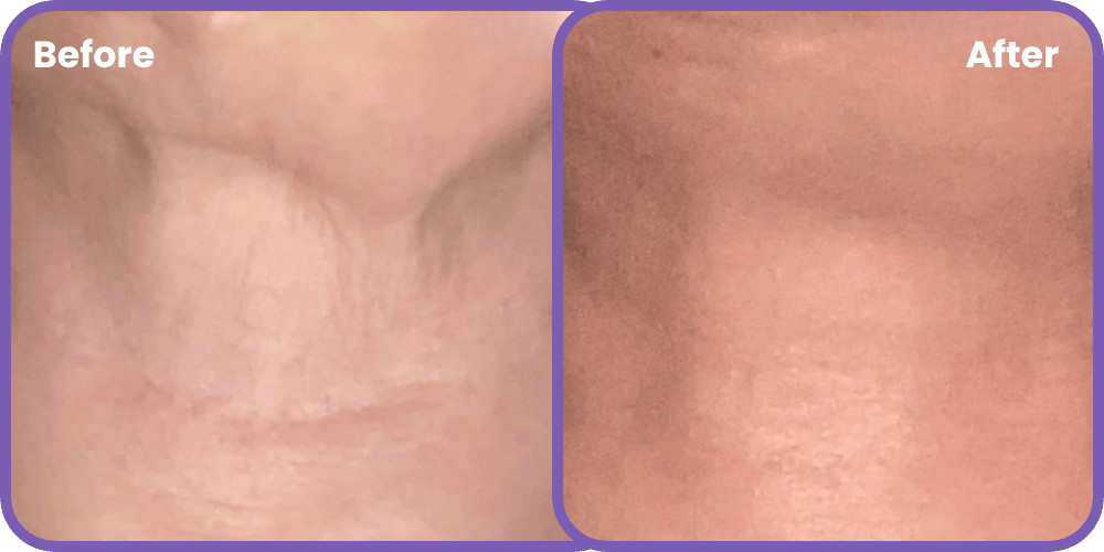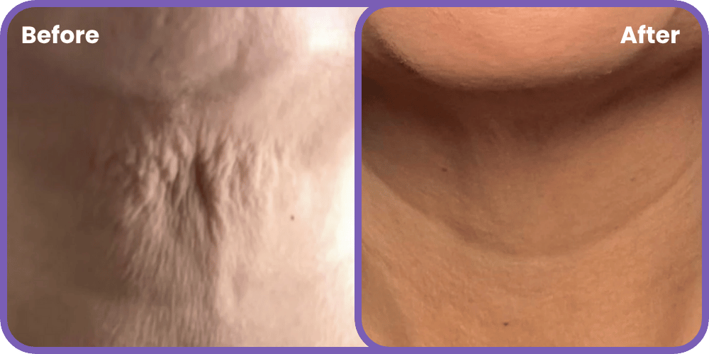 „Ich bin 51 und habe in den letzten 14 Monaten über 100 Pfund verloren. Das war ein großer Erfolg – aber mein Hals hat mich jedes Mal gestört. Mit dieser Creme sah ich sofort eine Verbesserung — und nach 90 Tagen war der Unterschied enorm.“