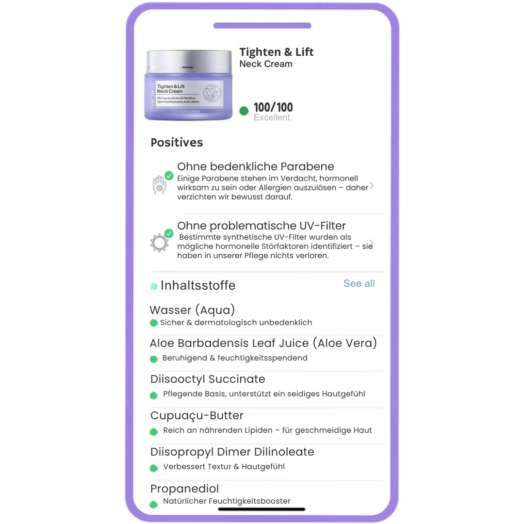 Wir arbeiten bewusst strenger als die EU-Kosmetikverordnung – und führen eine eigene „Never List“, auf der über 2.700 bedenkliche Inhaltsstoffe dauerhaft ausgeschlossen sind.